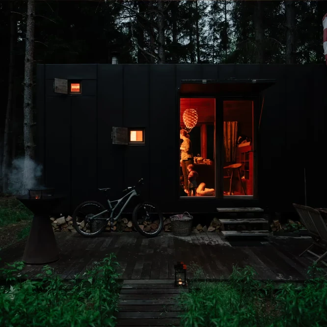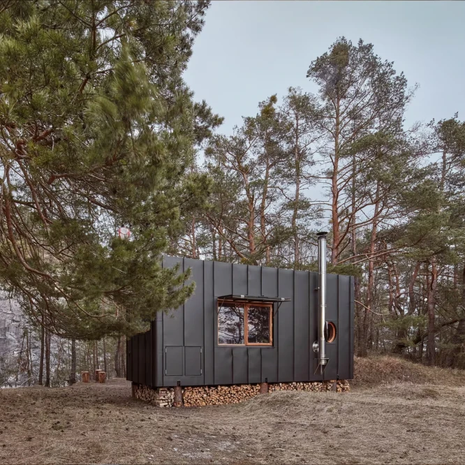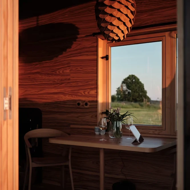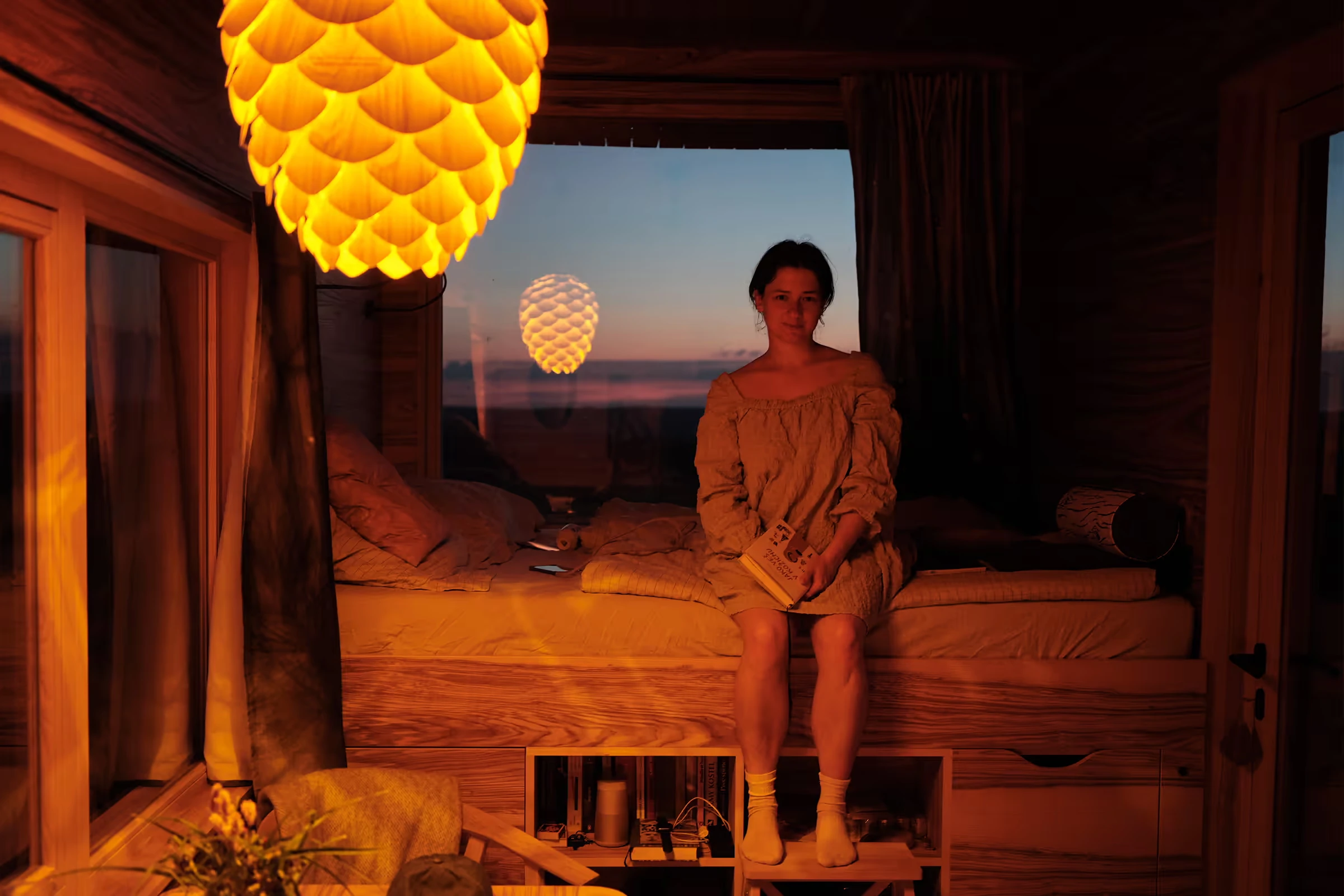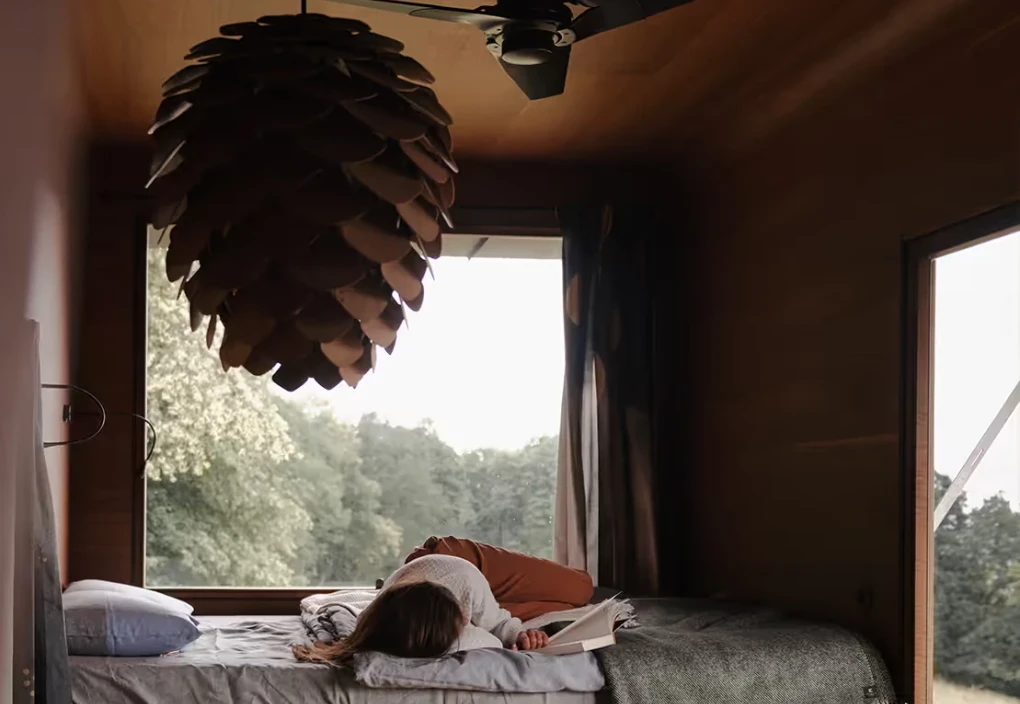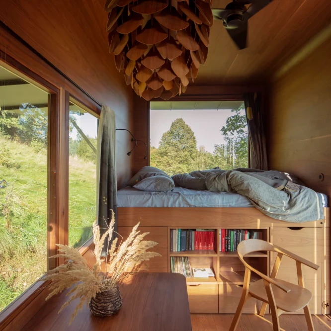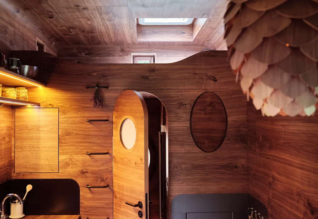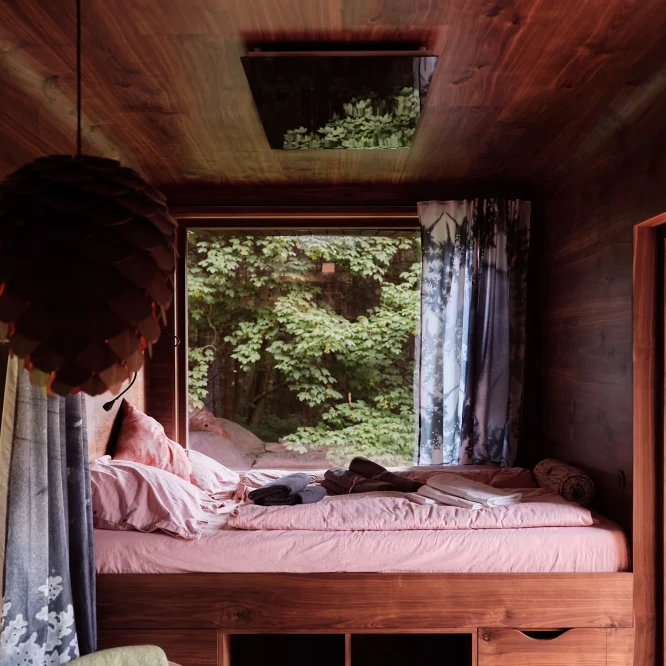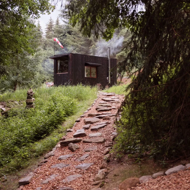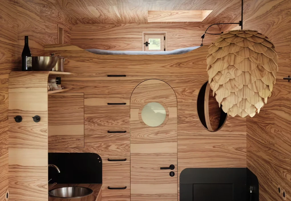 Za vývojem a designem domků i lustru stojí architekt Martin Kožnar. Obojí vzniklo pro glampingový projekt hideandseek Vladimíra Peška, který se na vzniku Šišky také podílel.