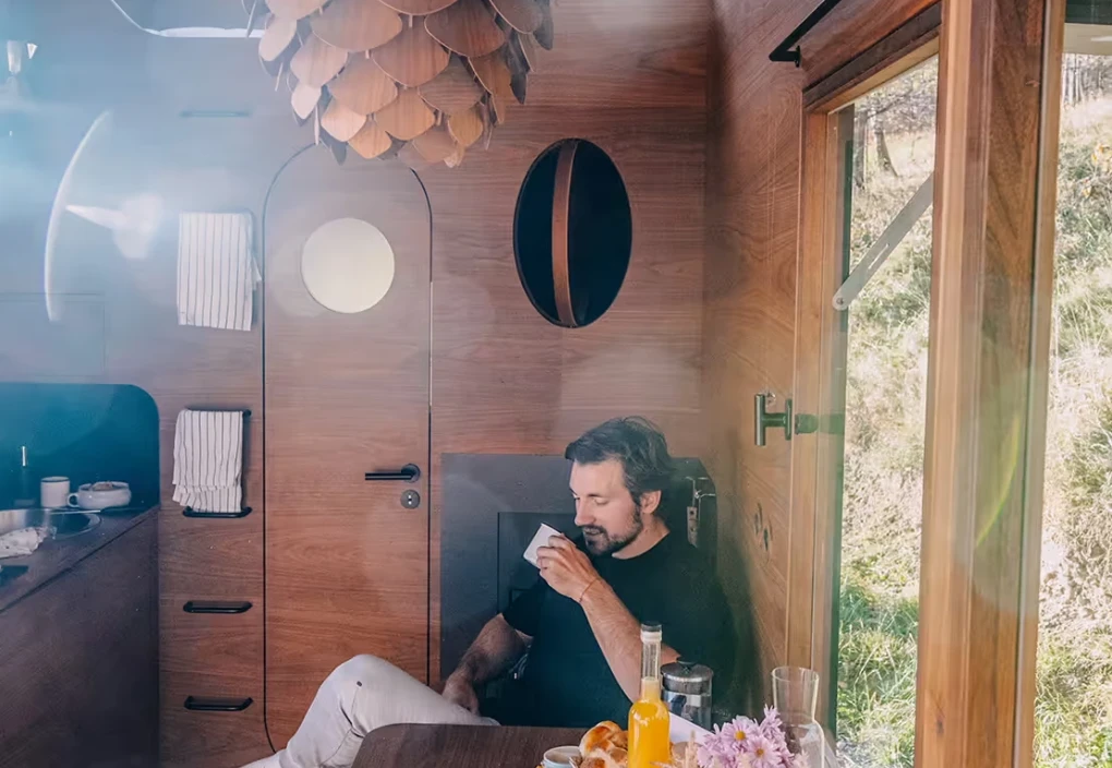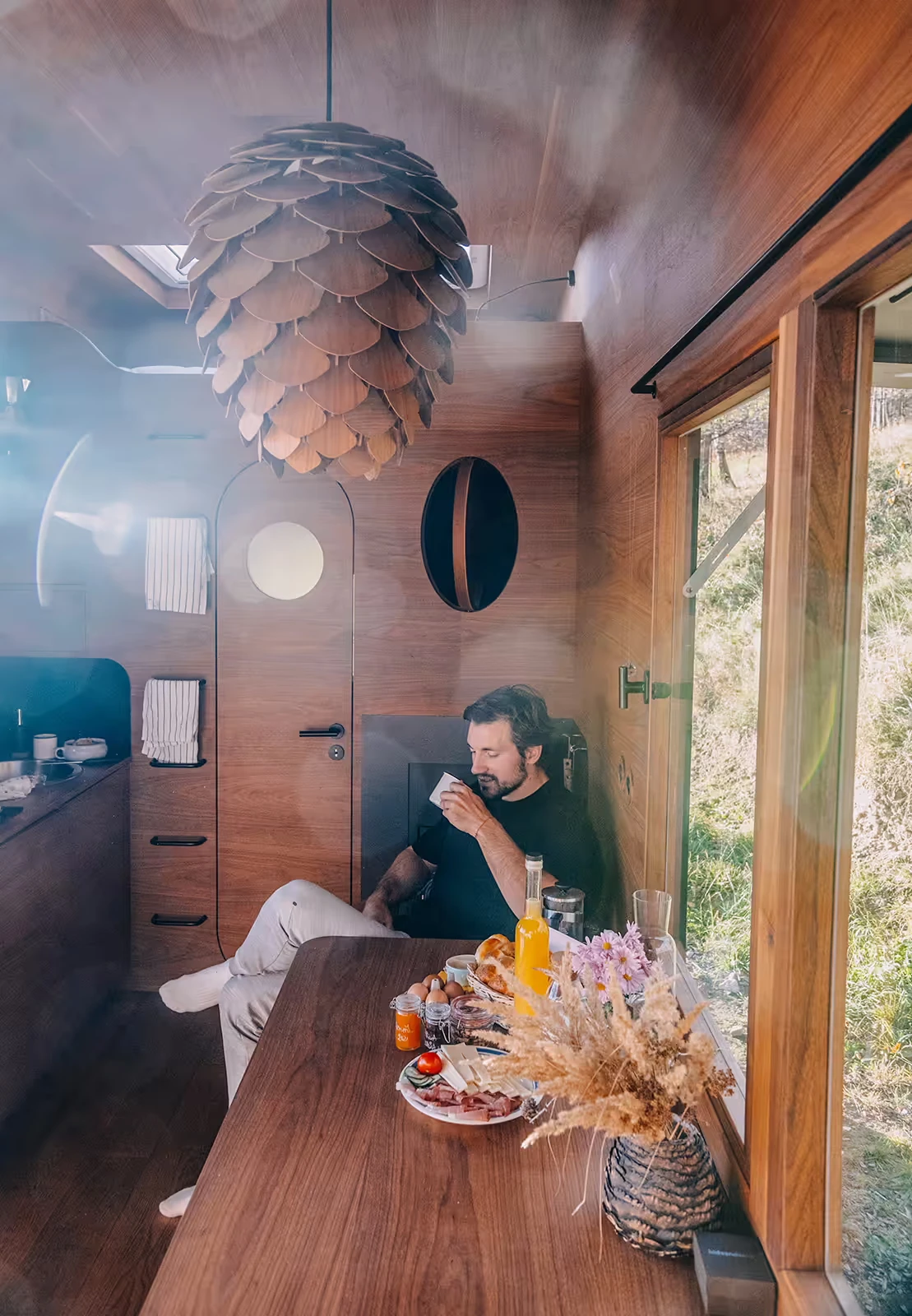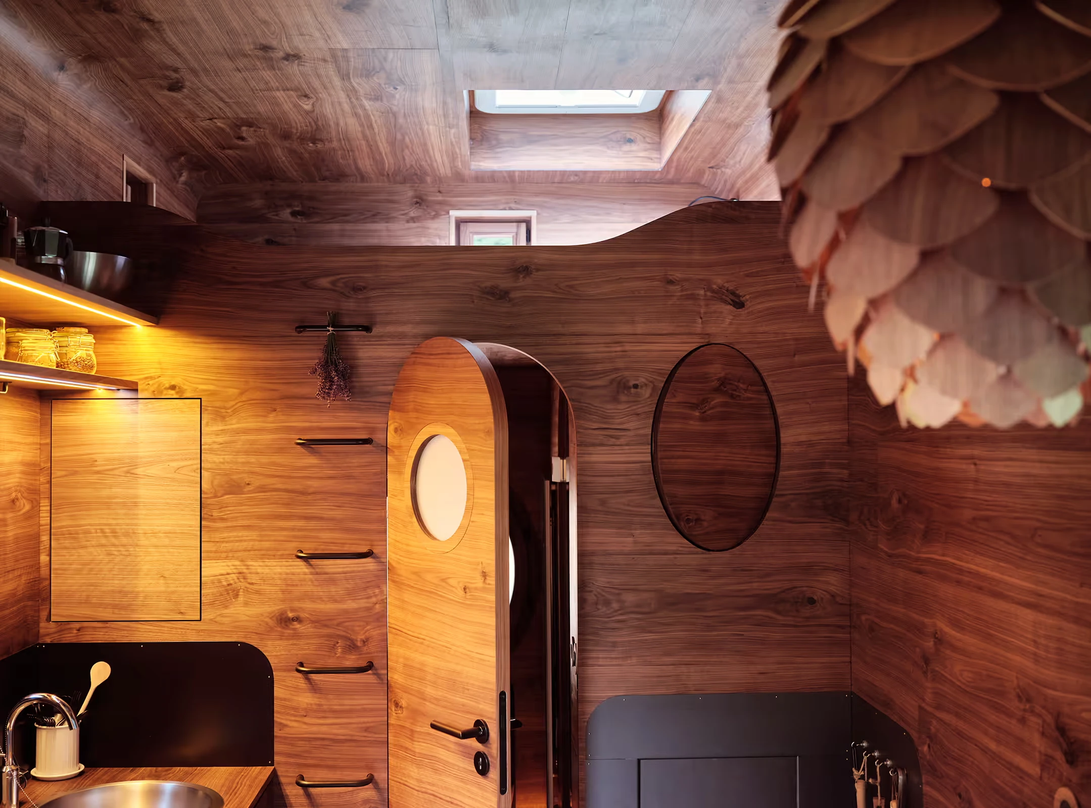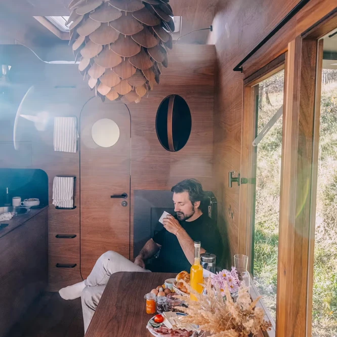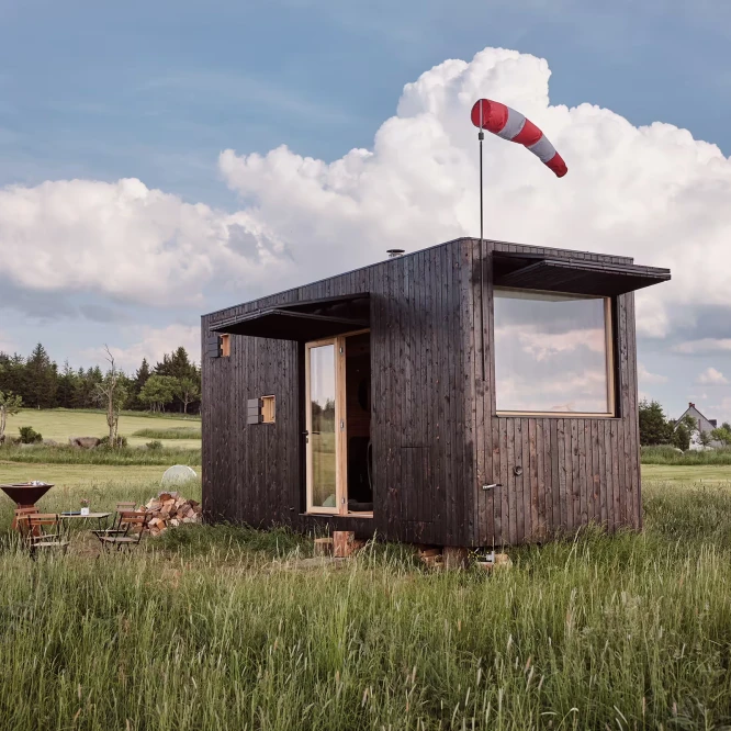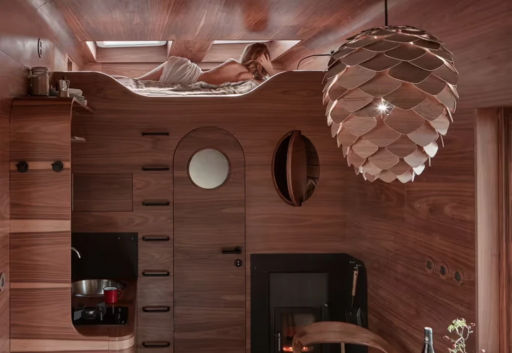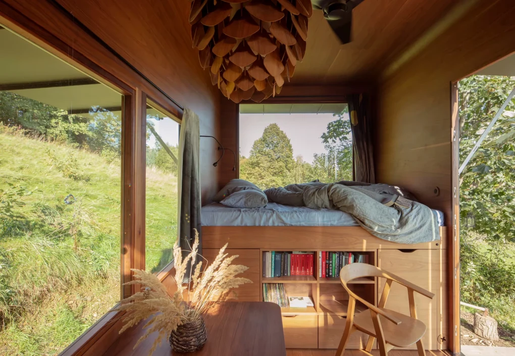 Za vývojem a designem domků i lustru stojí architekt Martin Kožnar. Obojí vzniklo pro glampingový projekt hideandseek Vladimíra Peška, který se na vzniku Šišky také podílel.