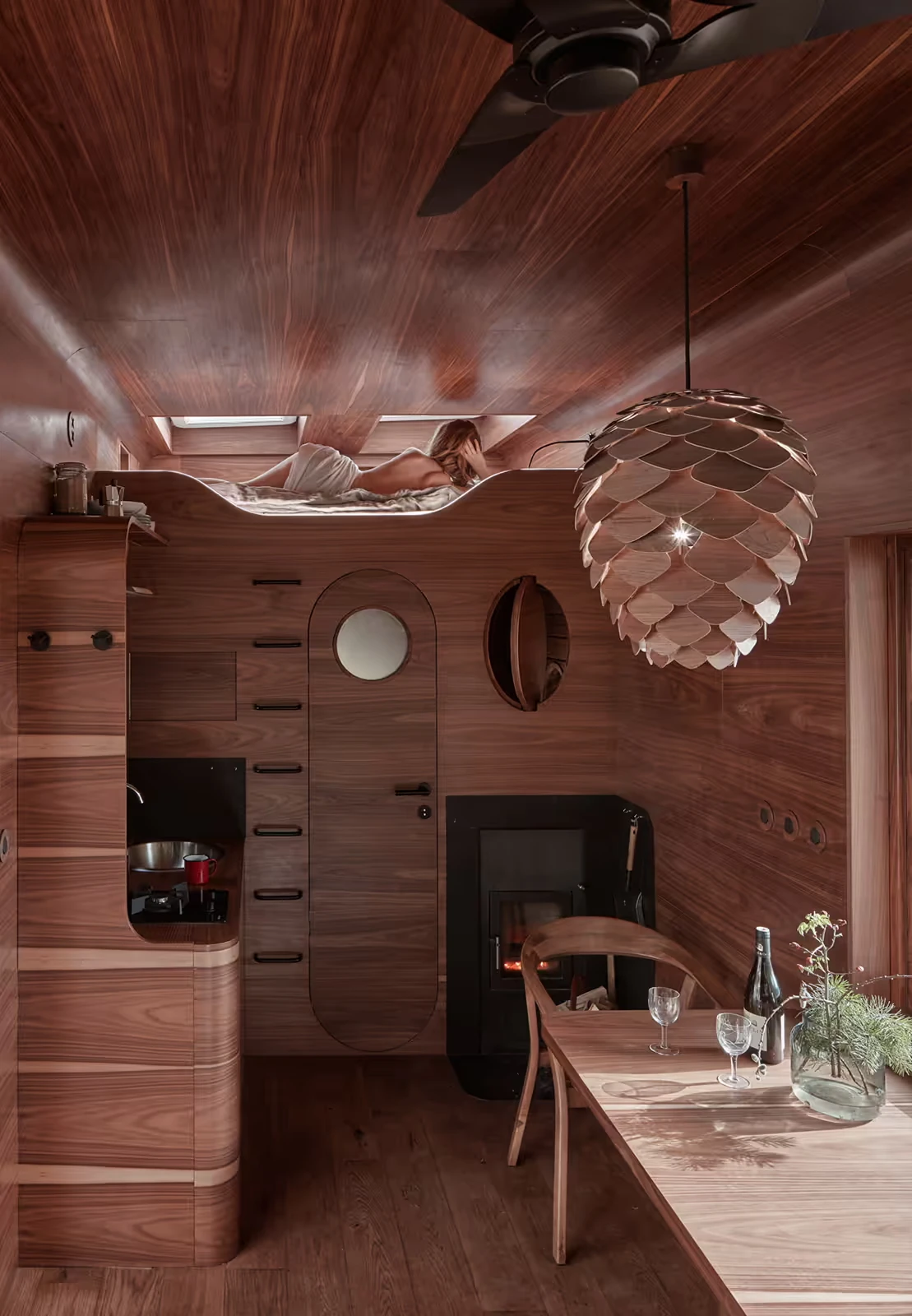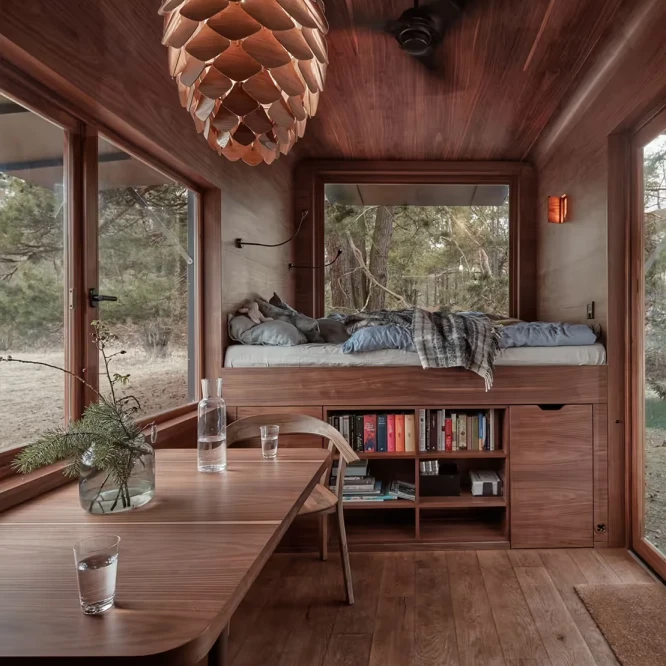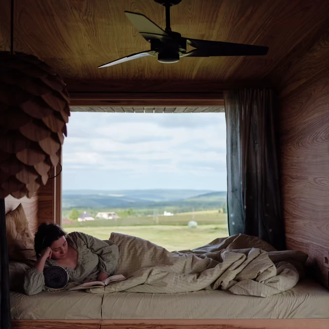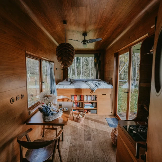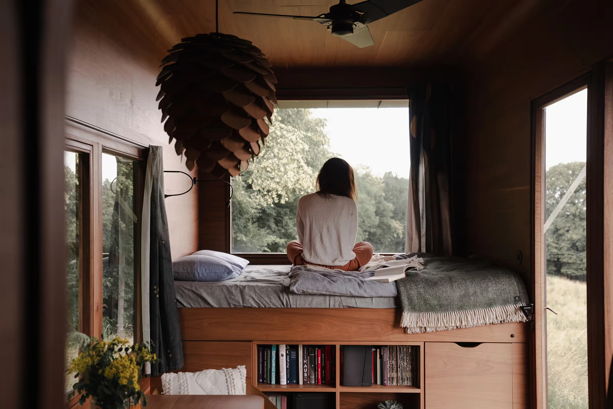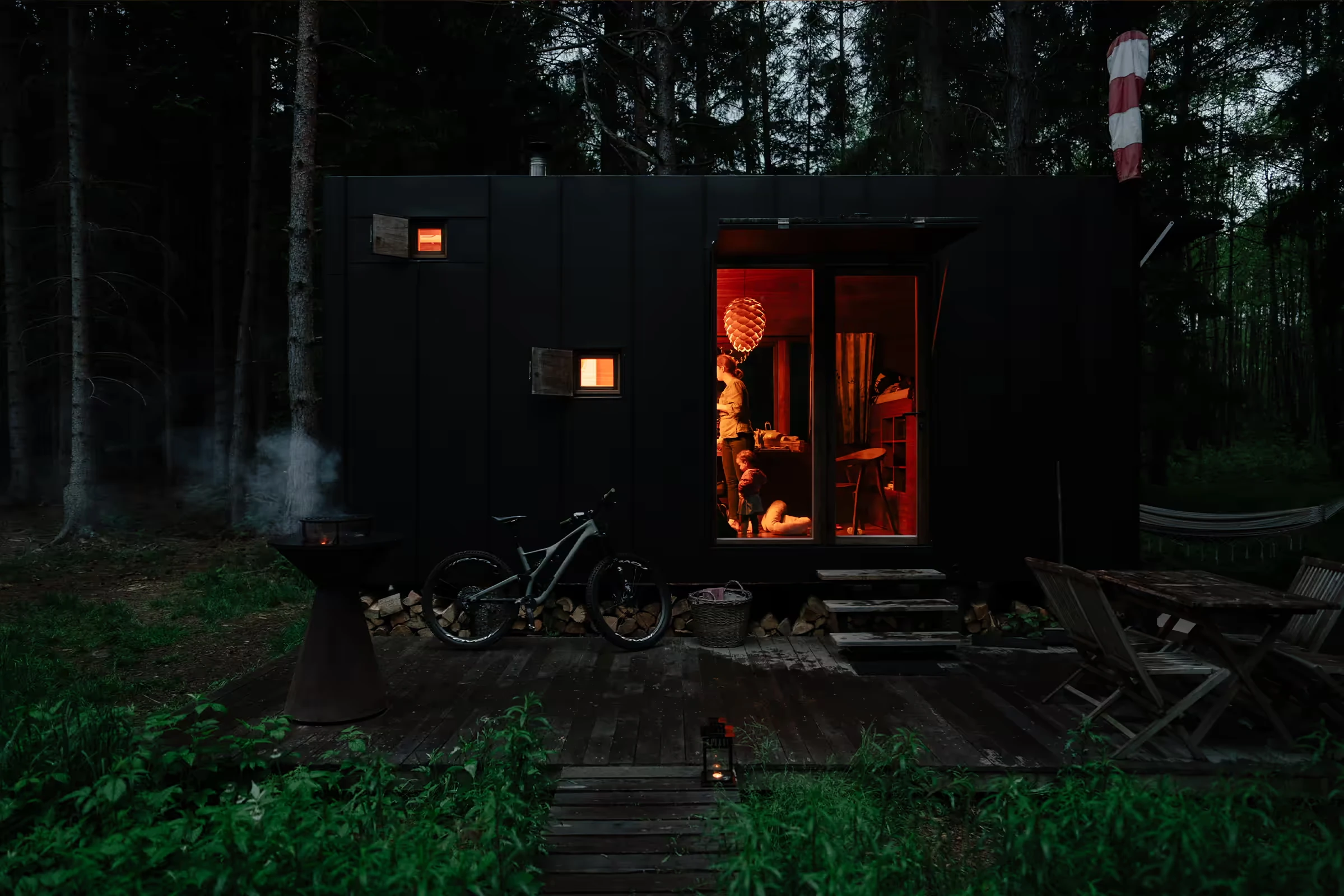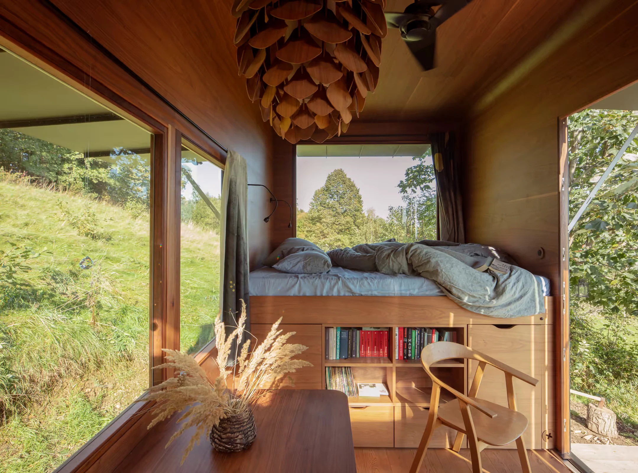Za vývojem a designem domků i lustru stojí architekt Martin Kožnar. Obojí vzniklo pro glampingový projekt hideandseek Vladimíra Peška, který se na vzniku Šišky také podílel.