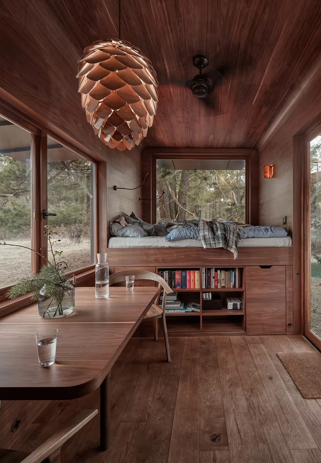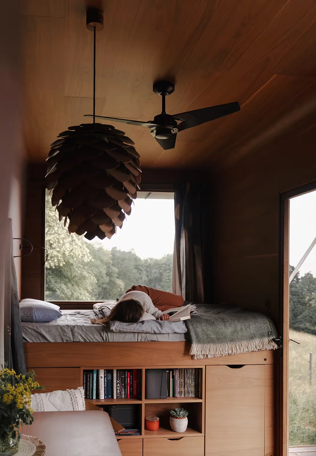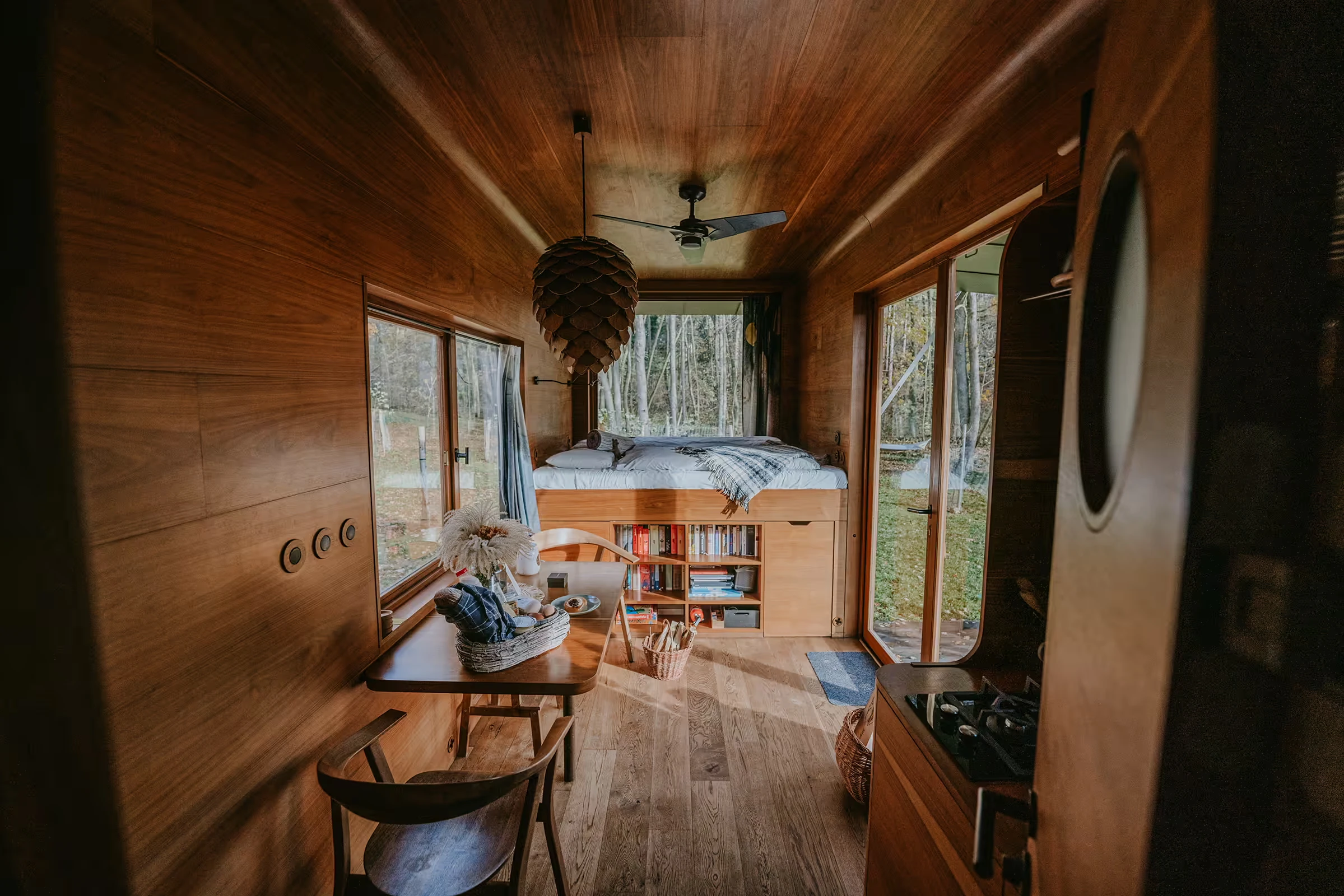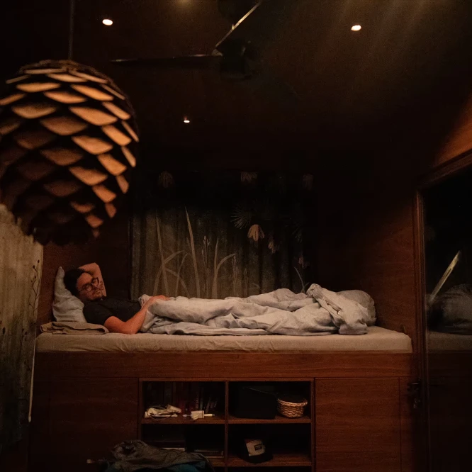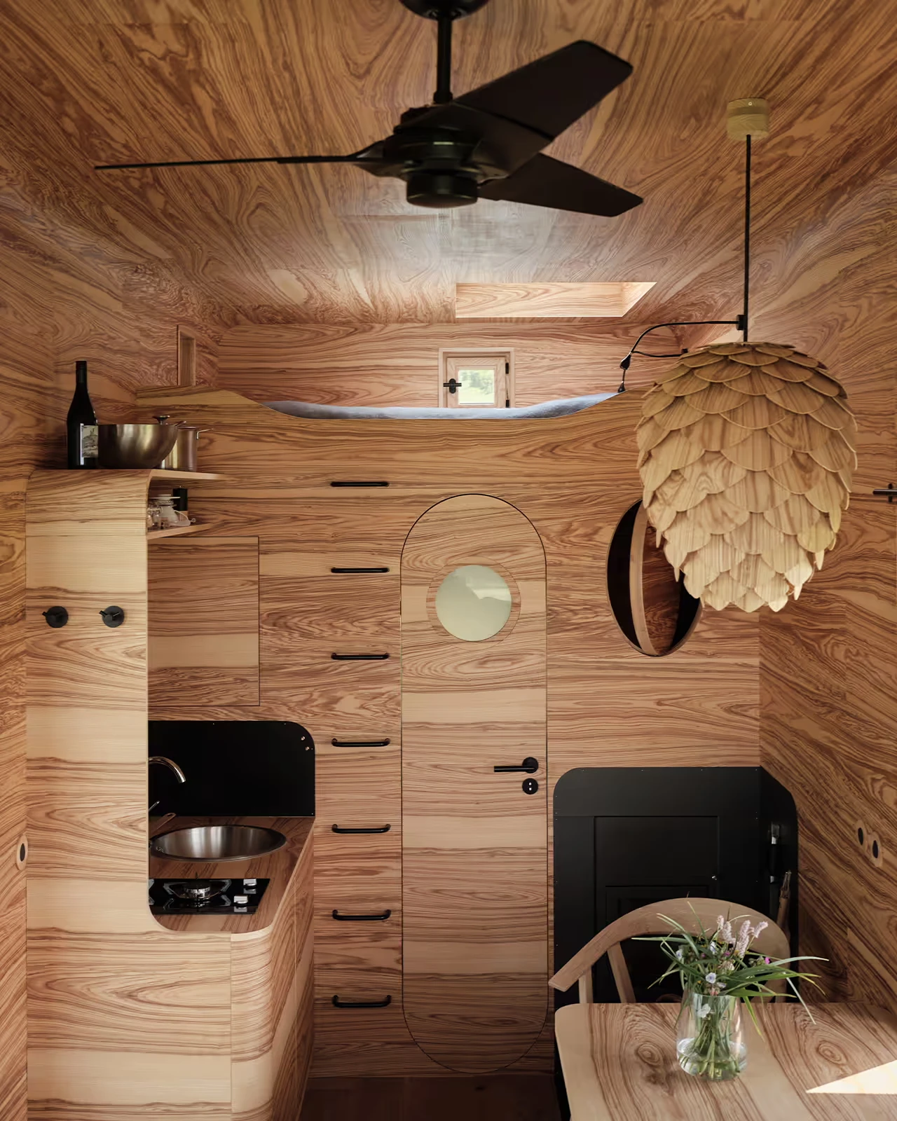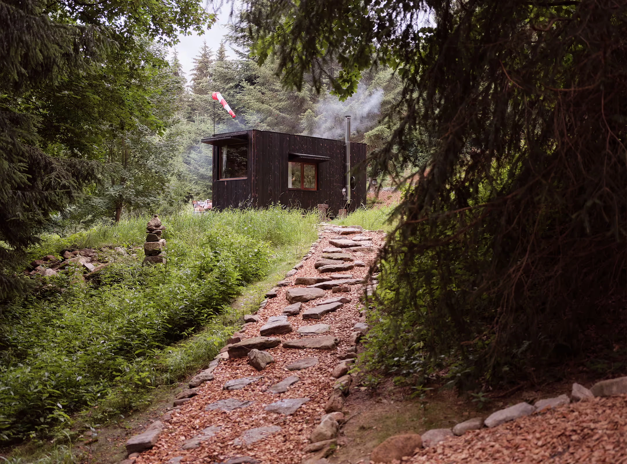 Za vývojem a designem domků i lustru stojí architekt Martin Kožnar. Obojí vzniklo pro glampingový projekt hideandseek Vladimíra Peška, který se na vzniku Šišky také podílel.