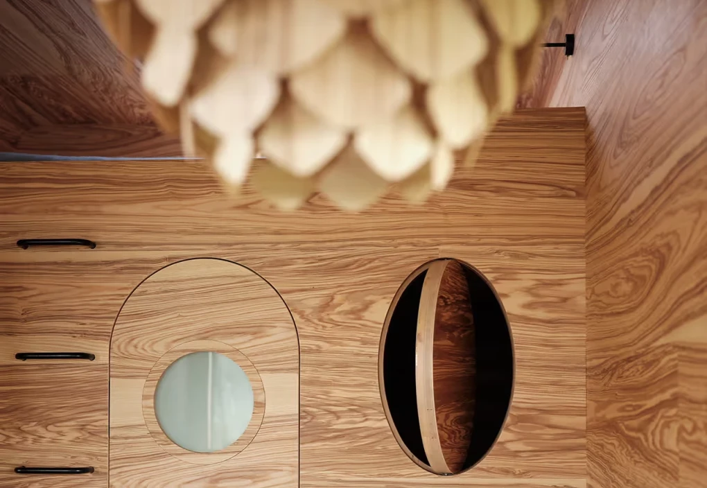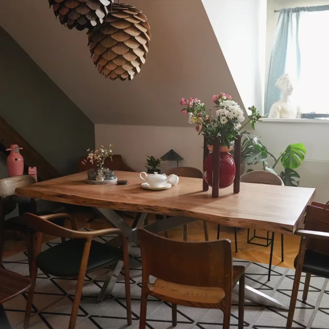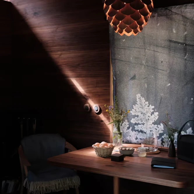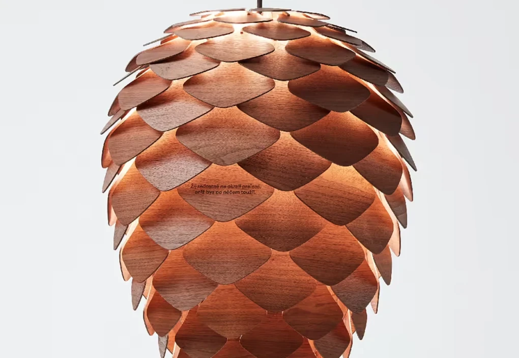 První prototyp lustru, pojmenovaný jednoduše „Šiška“, vznikl právě jako součást unikátního interiéru Aranky – jako prvek propojující přírodu a moderní design.