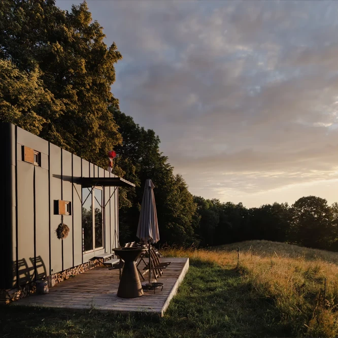 Příběh lustru KONNE začíná v září 2019 a je úzce spjatý s realizací minidomku s osobitým designem a specifickým technickým řešením, který byl uveden na trh v lednu 2020 pod jménem Aranka.